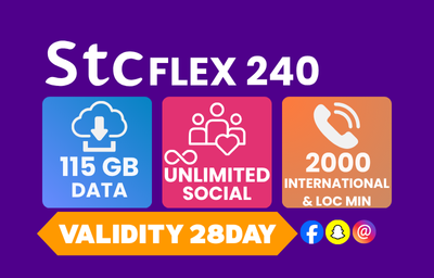 FLEX 240 115GB INTERNET & UNLIMITED SOCIAL 200 INTERNATIONAL AND LOCAL MINUTES