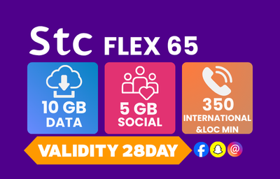 FLEX 65 10GB INTERNET & 5 GB SOCIAL 350 INTERNATION AND LOCAL CALL MINUTES