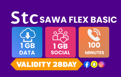 SAWA FLEX BASIC 1GB INTERNET & 1 GB SOCIAL 100 CALL MINUTES
