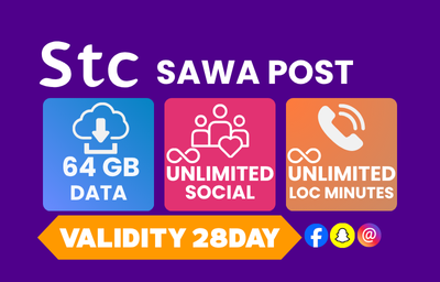 SAWA POST PLUS 80GB INTERNET & UNBLIMITED SOCIAL 1500 LOCAL MINUTES