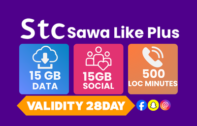 SAWA LIKE PLUS 15GB INTERNET & 15GB SOCIAL 500 LOCAL MINUTES